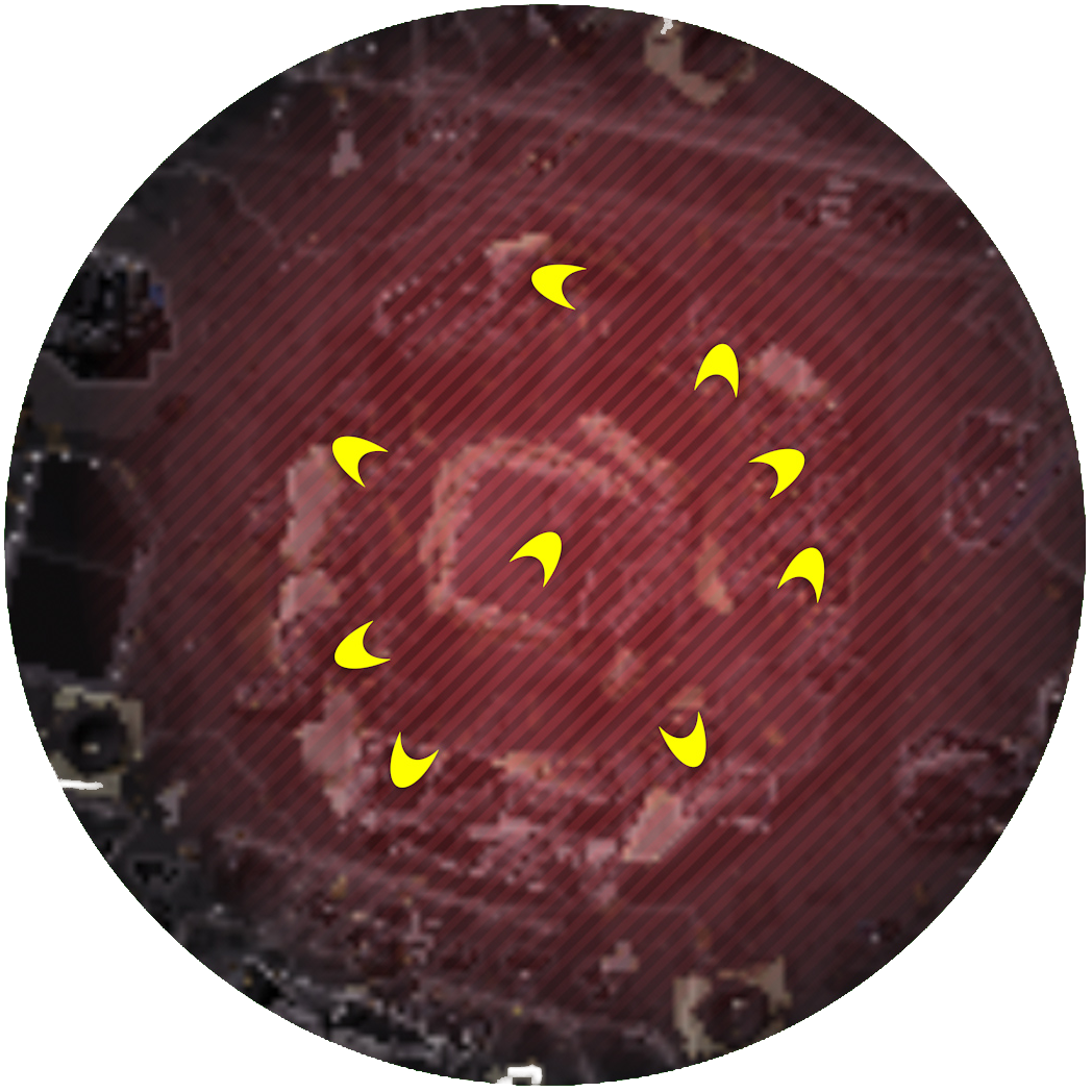It consists of 9 holes. 8 are located in the circular moat and the ninth is higher up in the central pillar part.