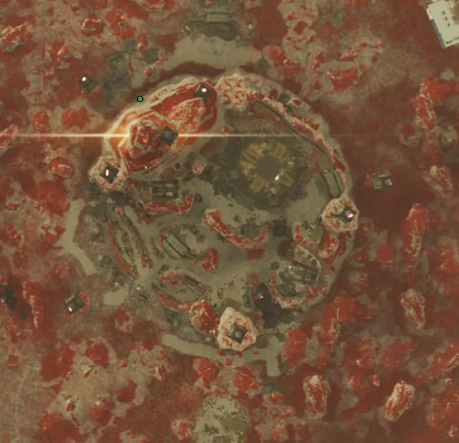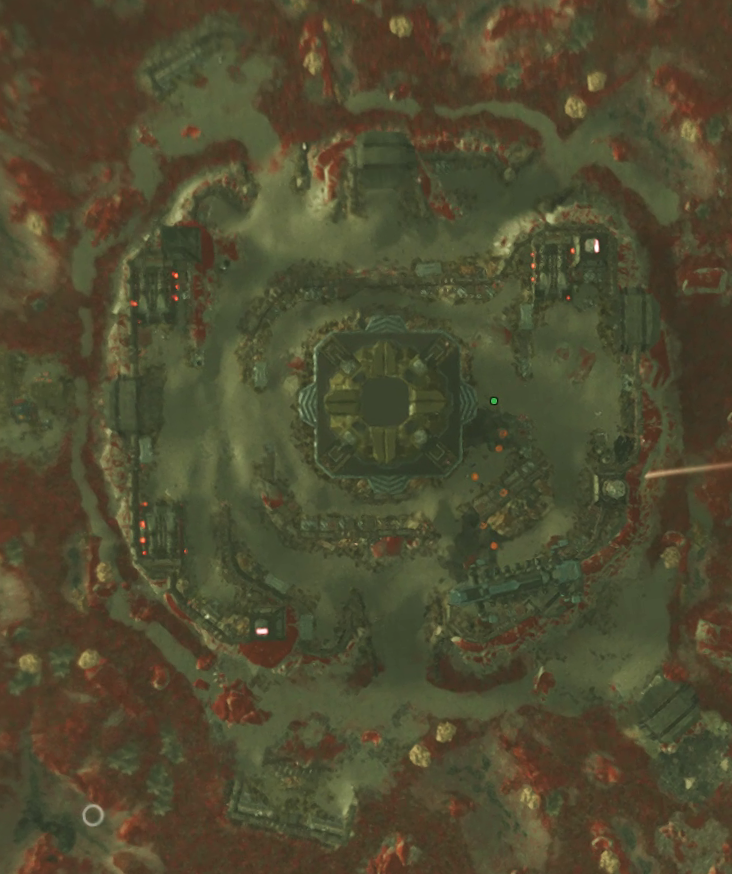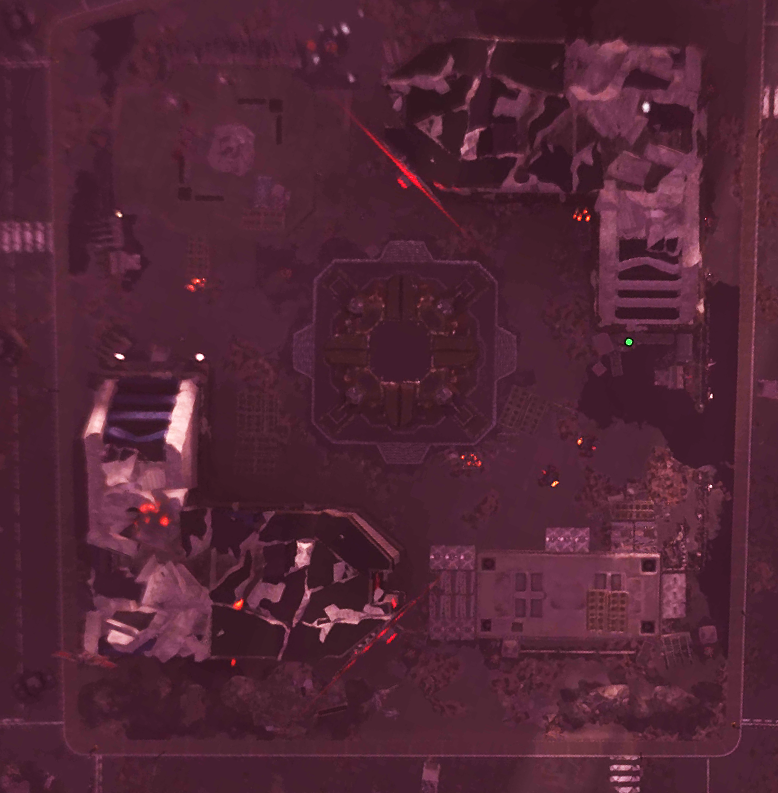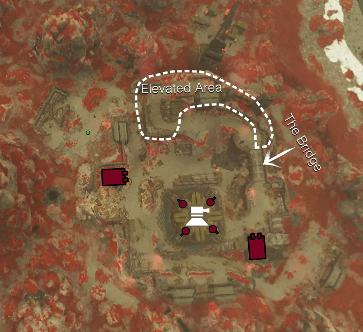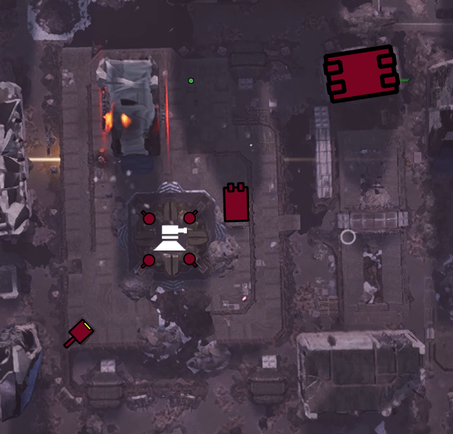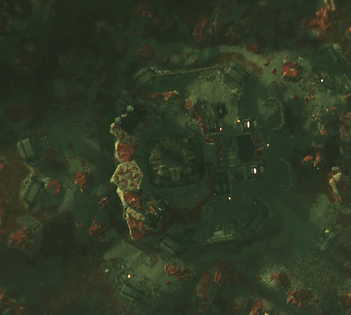 On the map: The bunker is in the corner of the outpost and is surrounded by a half-moon shaped rock formation. There are 4 small dark grey squares which correspond to Automaton light spots.