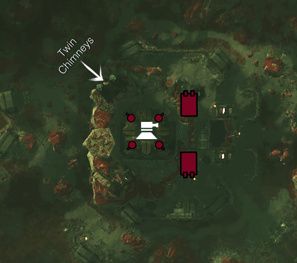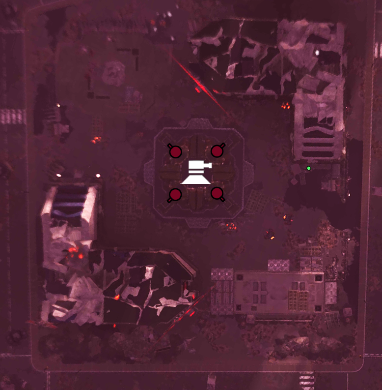 Although the symmetrical nature of the bunker suggests the presence of 4 killing pads (1 per side), not all bunker variants have all 4 visible.