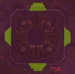 This variant contains no defensive structures (heavy turret, bunker turret) or spawners (fabricator, bulk fabricator).