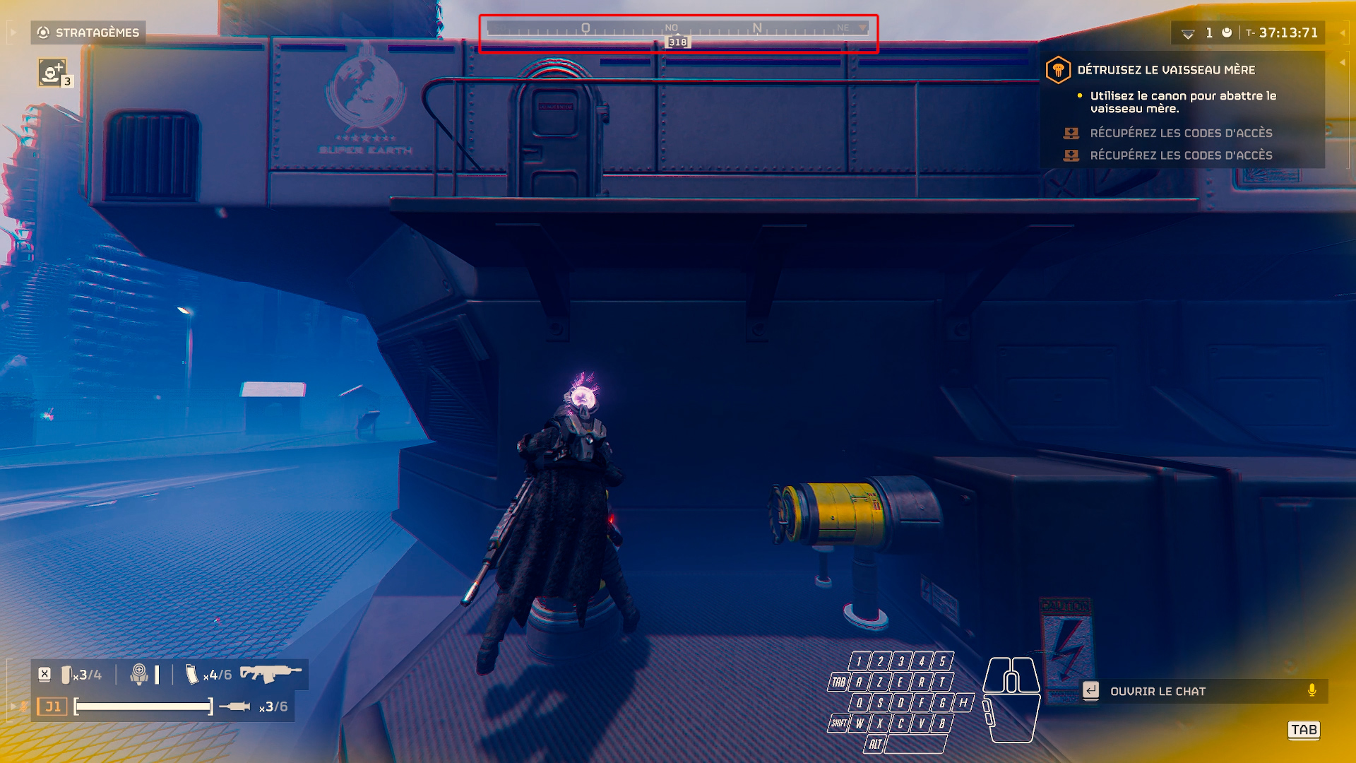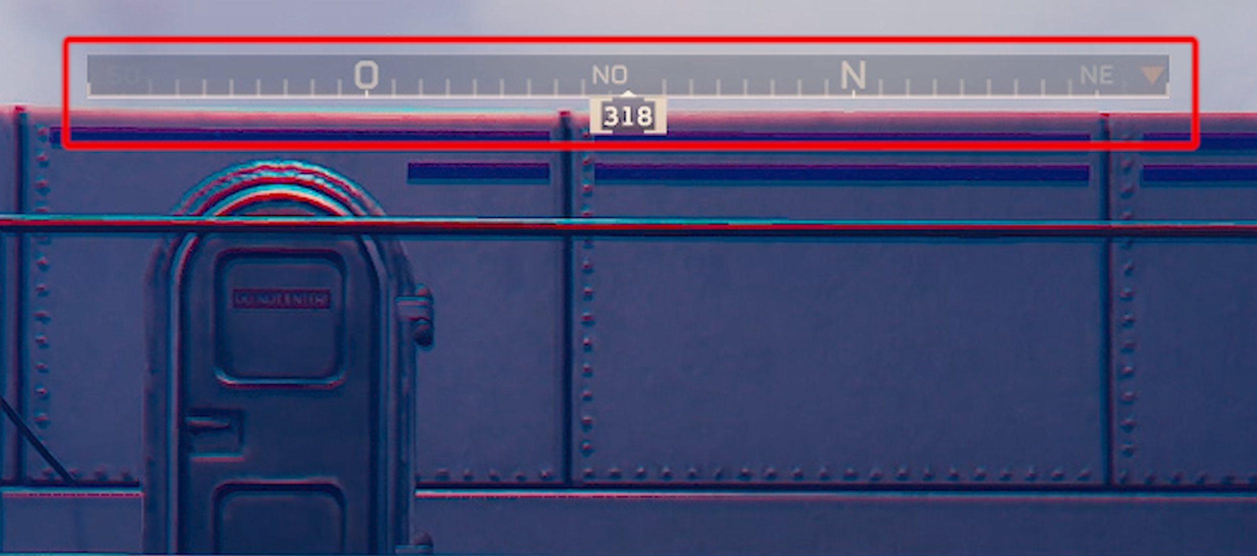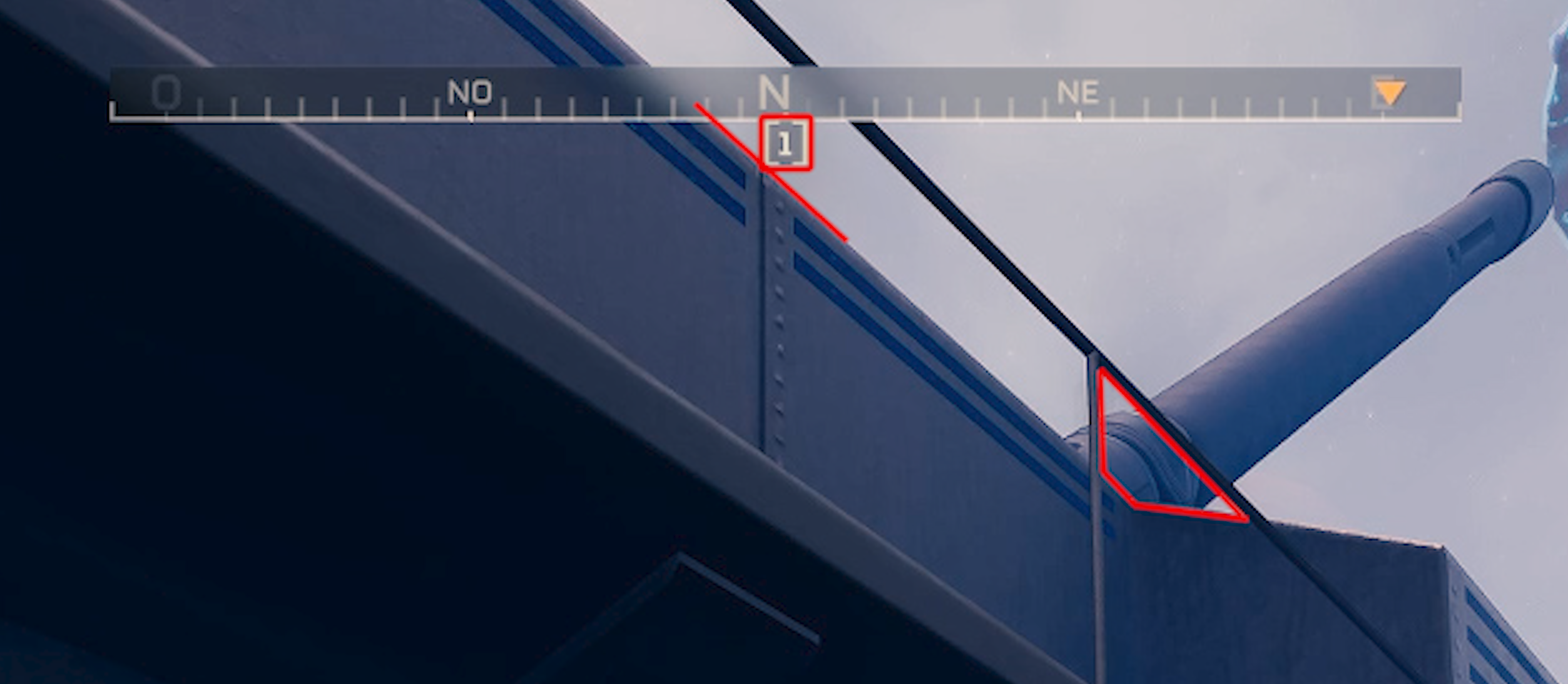 Once the cannon is properly aligned during your scouting planning, proceed as if you were going to rotate the horizontal valve and turn your camera until your compass and the upper part of the cannon are parallel. Keep the degree number (here 318) in mind and during your attempts, rotate your camera while pivoting the cannon until the compass box showing that degree number is aligned parallel with the cannon.
