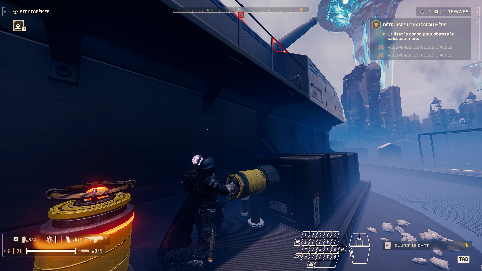 The trick is to use the cannon but only to destroy the Overship, not its shield. You should therefore use other means to do so without slowing down the run. So far, 3 stratagems have been identified, the best being the Expendable Napalm.